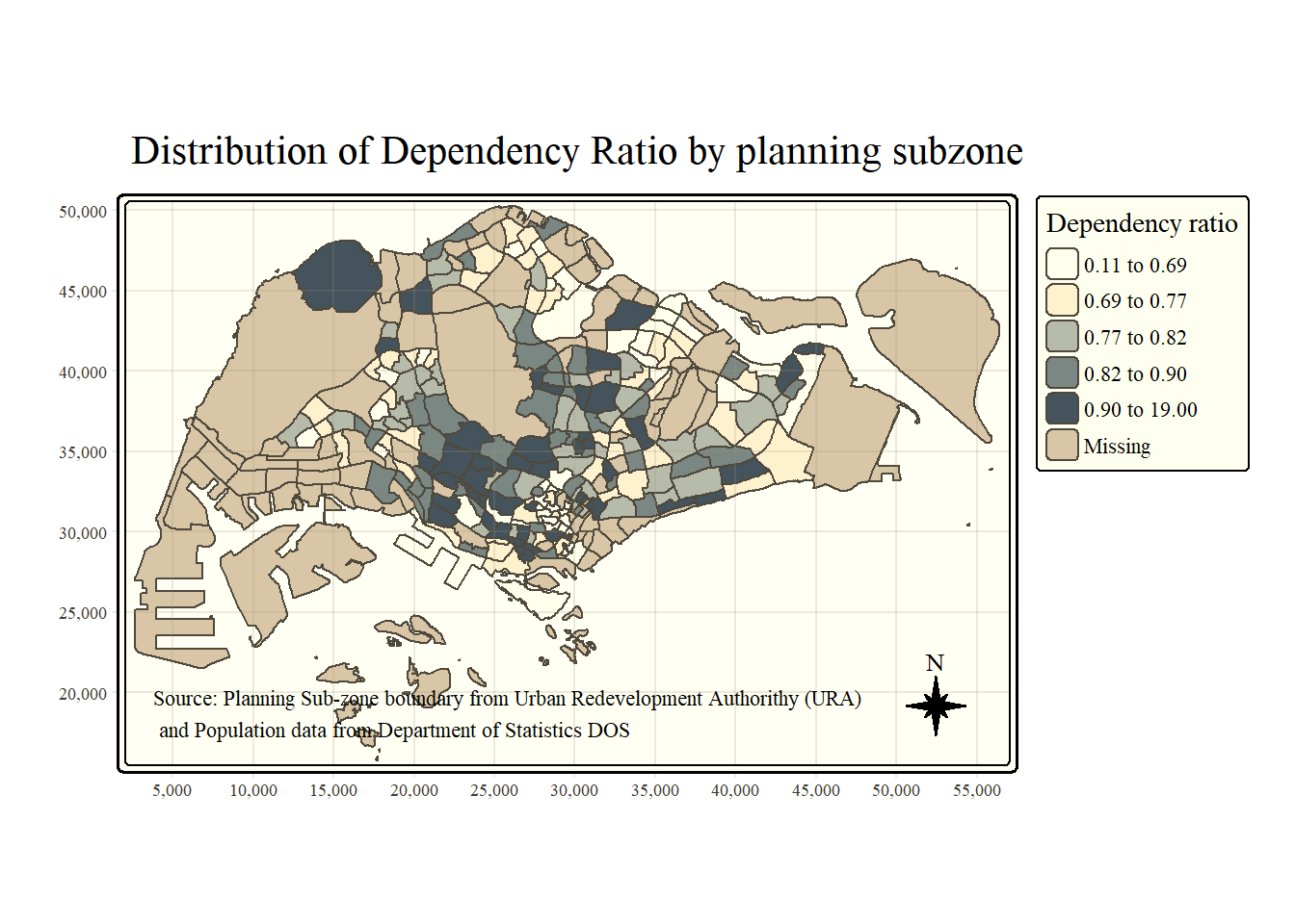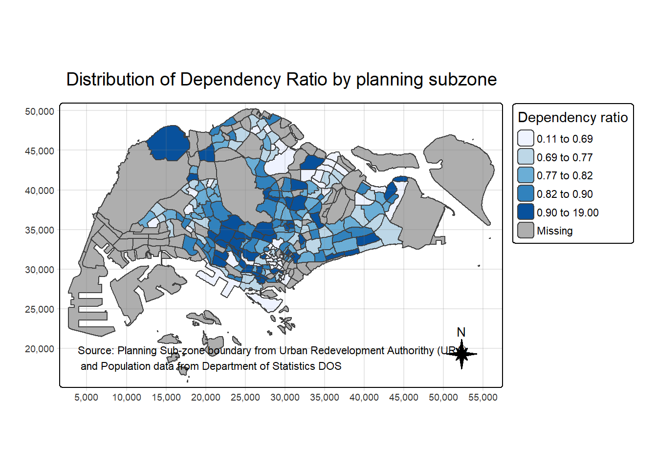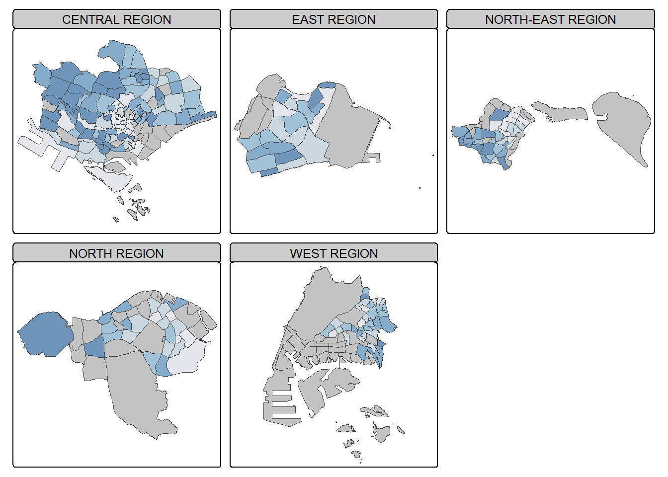Next, left_join() of dplyr is used to join the geographical data and attribute table using planning subzone name e.g. SUBZONE_N and SZ as the common identifier.