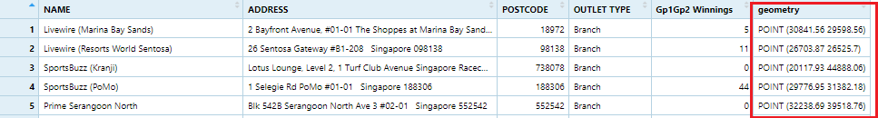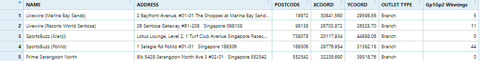 `TOTAL`, `DEPENDENCY`)Before we can perform the georelational join, one extra step is required to convert the values in PA and SZ fields to uppercase. This is because the values of PA and SZ fields are made up of upper- and lowercase. On the other, hand the SUBZONE_N and PLN_AREA_N are in uppercase.