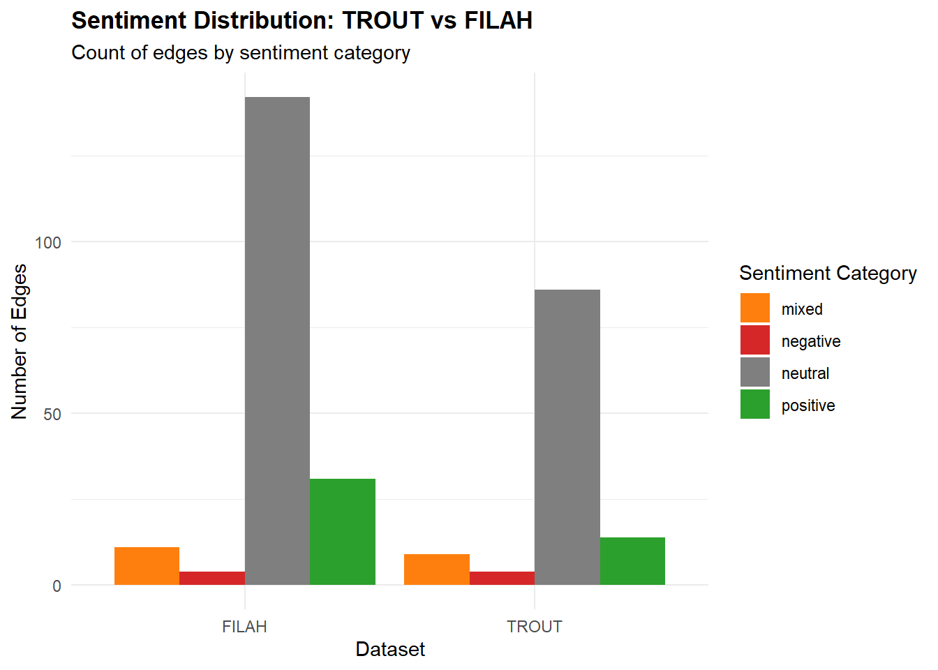 TROUT’s sparse coding: Lower total edges suggest systematic omission of sentiment data that doesn’t support their narrative