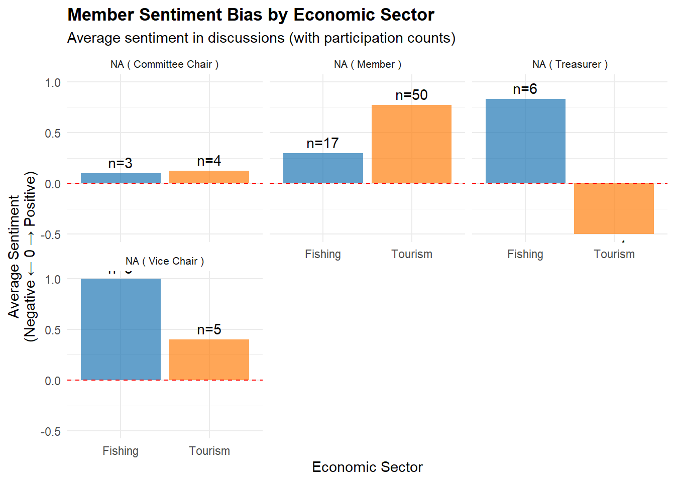 - The code’s “Tourism” bars for them are artifacts (either inherited average sentiment or simply plotted as zero participation) but can generally be ignored.